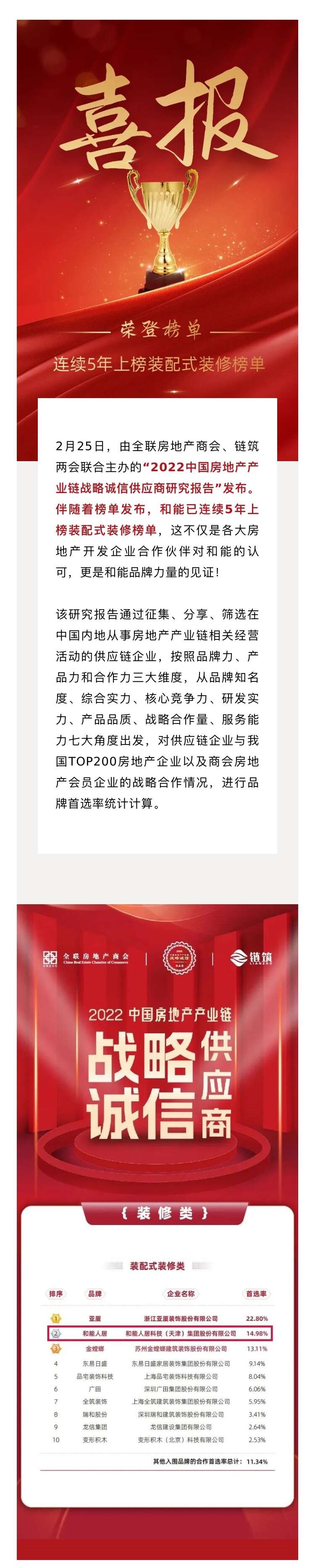 上一條:房建供應(yīng)鏈綜合實(shí)力TOP500榜單發(fā)布,和能連續(xù)五年蟬聯(lián)裝配式內(nèi)裝榜首!